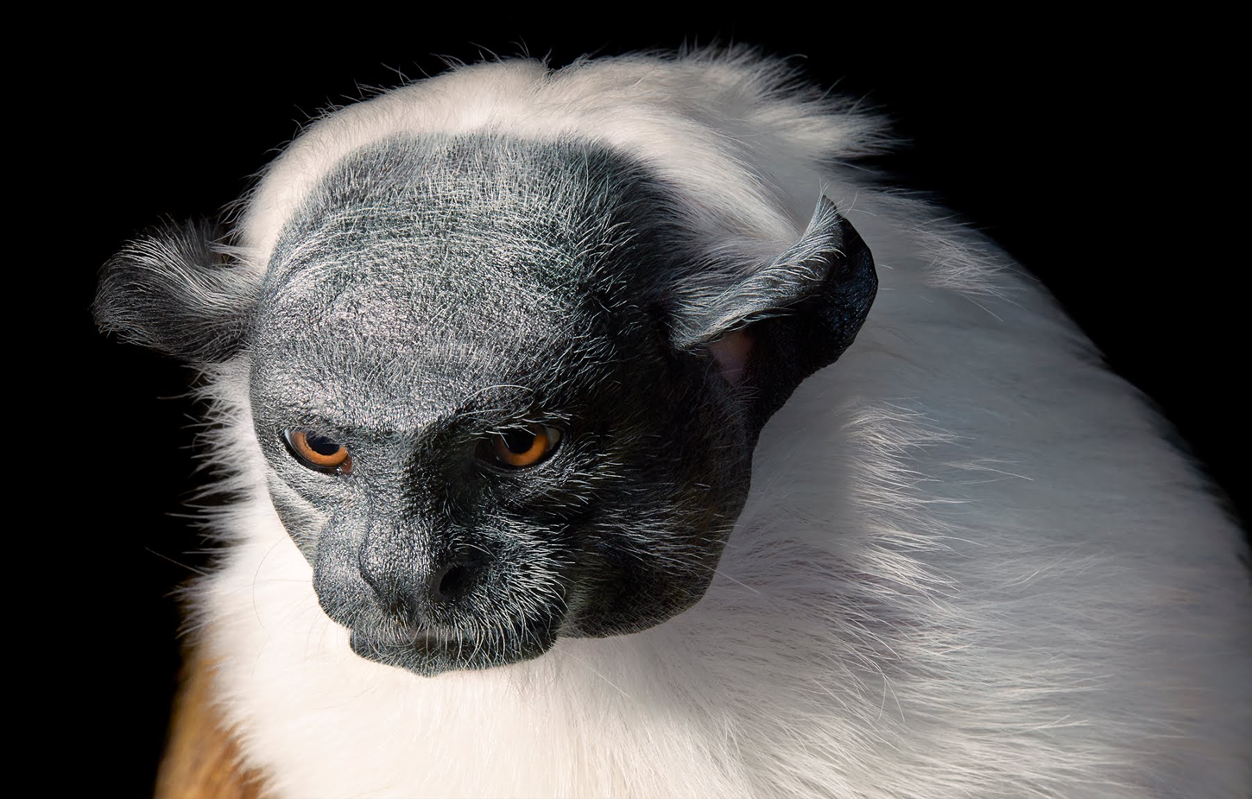Este es Djala, un gorila occidental de las tierras bajas, fotografiado en un santuario inglés dirigido por la Fundación Aspinall. Fue rescatado en Gabón en la década de 1980 cuando era un bebé, después de haber visto a toda su familia asesinada por cazadores furtivos. En el centro de rescate, superó gradualmente los profundos traumas de su niñez, y 30 años después fue llevado a casa, a los bosques de Gabón con su nueva familia. En la naturaleza, su salud ha mejorado: los bultos sobre su ojo izquierdo retrocedieron, perdió exceso de peso y continúa vivo a pesar de su vejez. El rescate y la reintroducción de gorilas es costoso, y algunos conservacionistas critican el enfoque, argumentando que los fondos podrían usarse con más eficacia para defender a los gorilas en peligro de extinción en la naturaleza.
