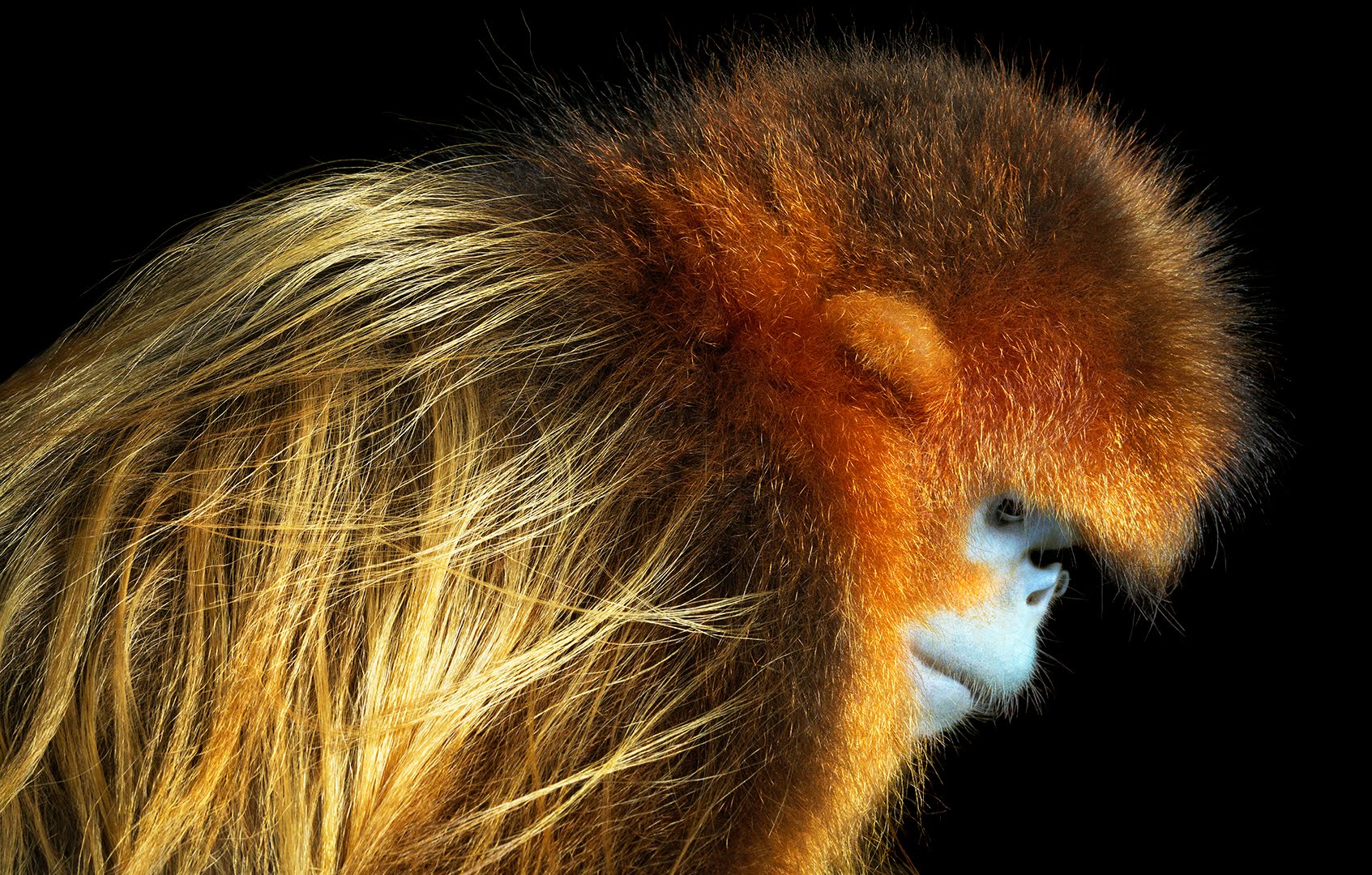 Localizado a lo largo de las montañas del centro de China, el mono dorado de nariz chata soporta algunos de los inviernos más duros de cualquier primate no humano puede soportar. Su capa de pelo larga y suave lo protege de los vientos helados mientras que su rostro desnudo soporta la mayor parte del frío. Ha sido cazado durante mucho tiempo por su hermoso pelaje, pero desde principios de la década de 1990, la caza furtiva se ha reducido gracias a una mayor protección del gobierno. No obstante, su número ha seguido disminuyendo a medida que se despejaron sus bosques para la obtención de madera y la creación de tierras de cultivo. Además, el turismo se ha expandido al amparo del crecimiento económico de China, y las manadas de monos se han visto fuertemente hostigadas y perseguidas para ser vistas. Tan solo alrededor de 120 ejemplares de esta especie sobreviven en la actualidad en estado salvaje.